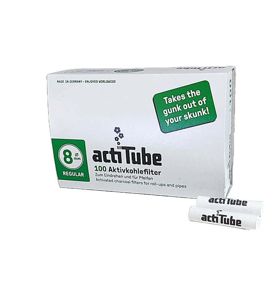 Quando o fumo passa através do carvão activado existente dentro do ActiTube, uma boa parte das substâncias são absorvidas pelo carvão. Este processo faz com que o fumo fique mais suave, sem alterar a qualidade. Os filtros de carvão Acti Tube em embalagens de 100 filtros, têm 8mm de diâmetro.