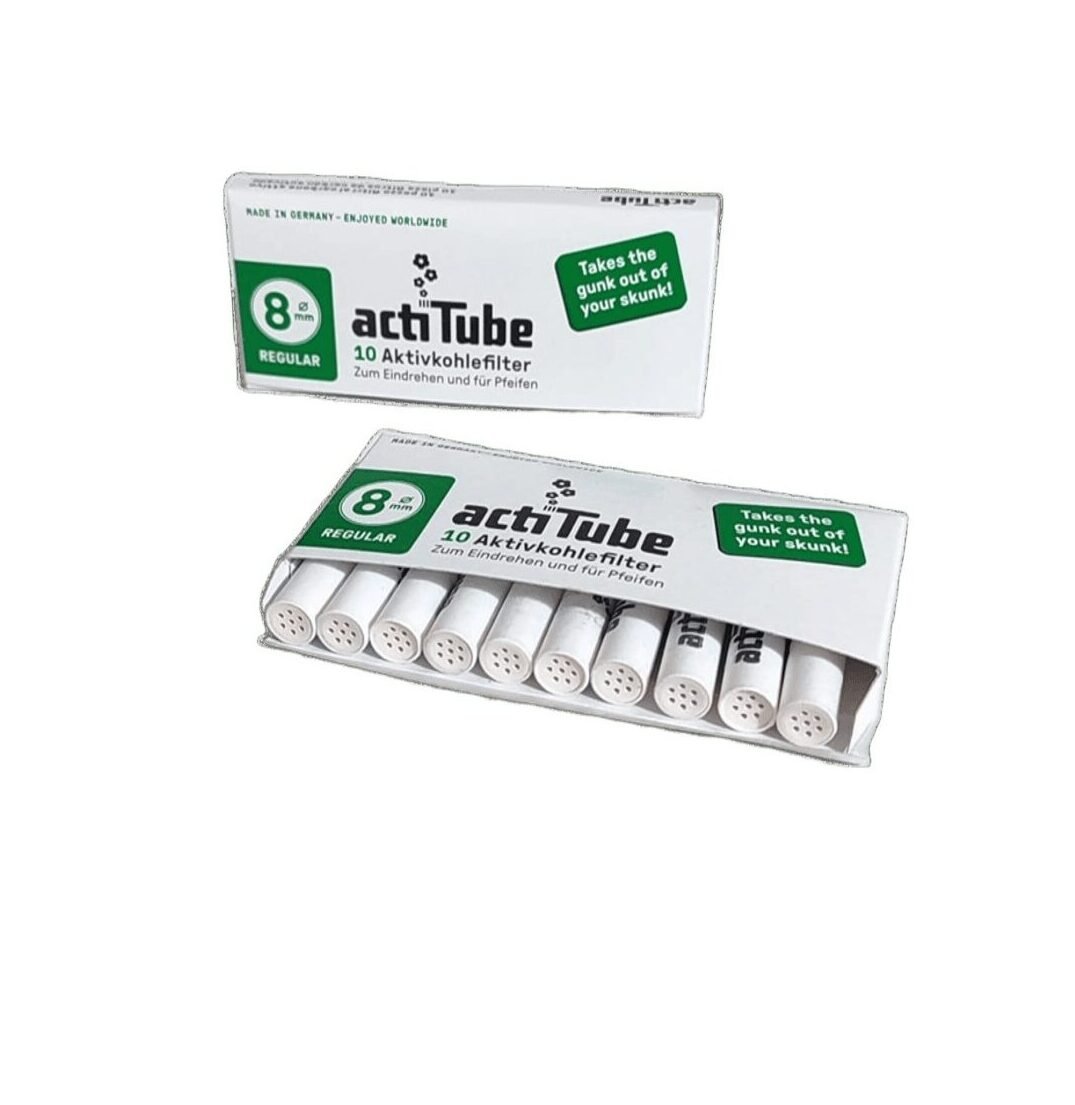 Quando o fumo passa através do carvão activado existente dentro do ActiTube, uma boa parte das substâncias são absorvidas pelo carvão. Este processo faz com que o fumo fique mais suave, sem alterar a qualidade. Os filtros de carvão ActiTube em embalagens de 10 filtros, têm 8mm de diâmetro.